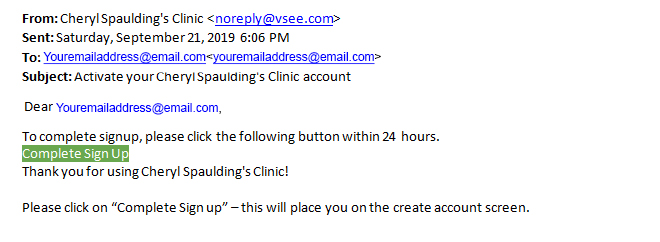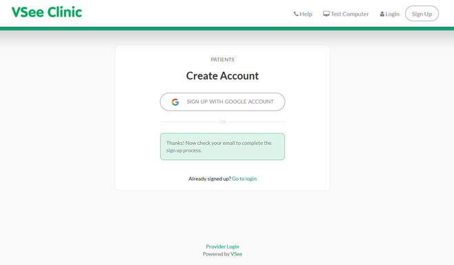 This screen is telling you that the VSee video conferencing program has sent you an email that will enable you to complete the sign-in process.